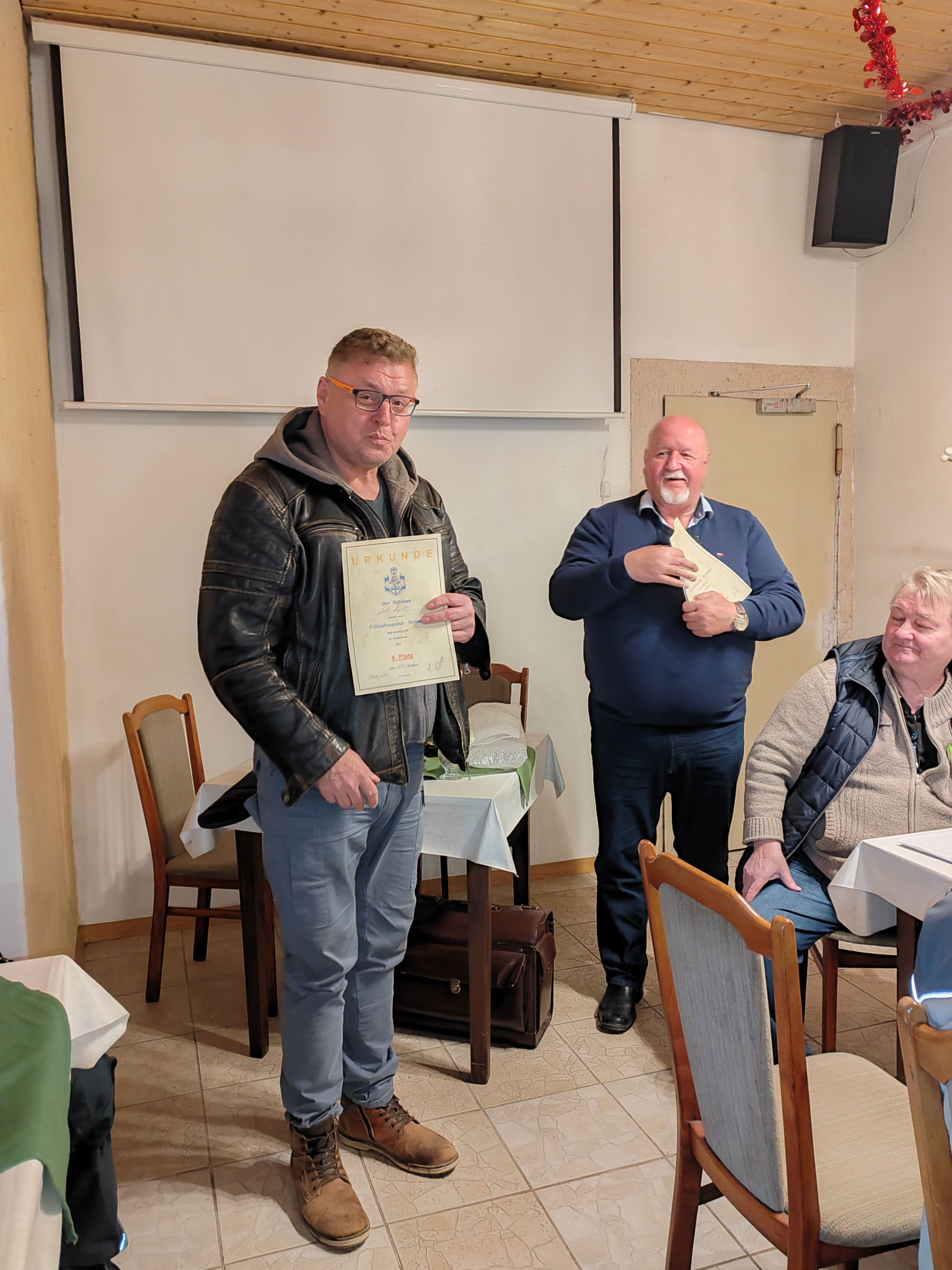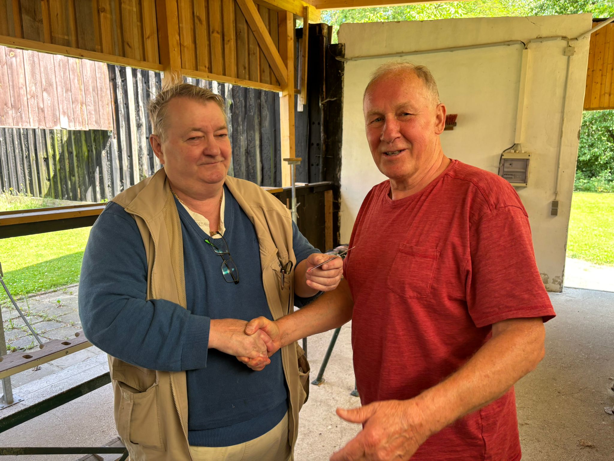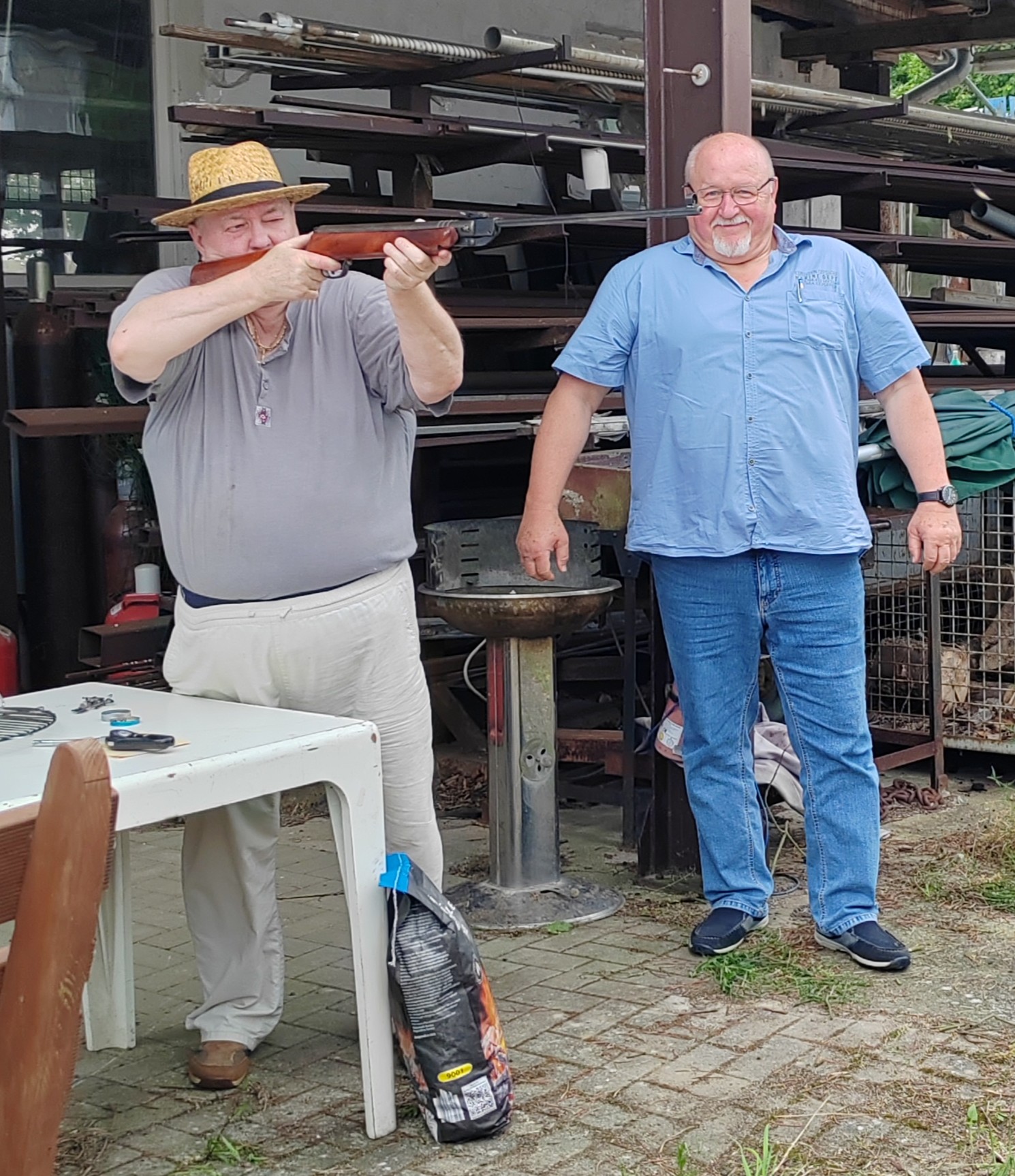 Beim heutigen Training durfte sich Schützenbruder Werner anlässlich seines Geburtstages über einen Einkaufsgutschein, übergeben vom Vorsitzenden Egon, freuen.